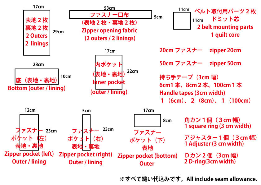 クロスボディバッグの型紙です。